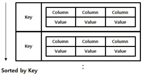 - Key 안에 (Column, Value)조합으로 된 여러 개의 필드가 존재 |